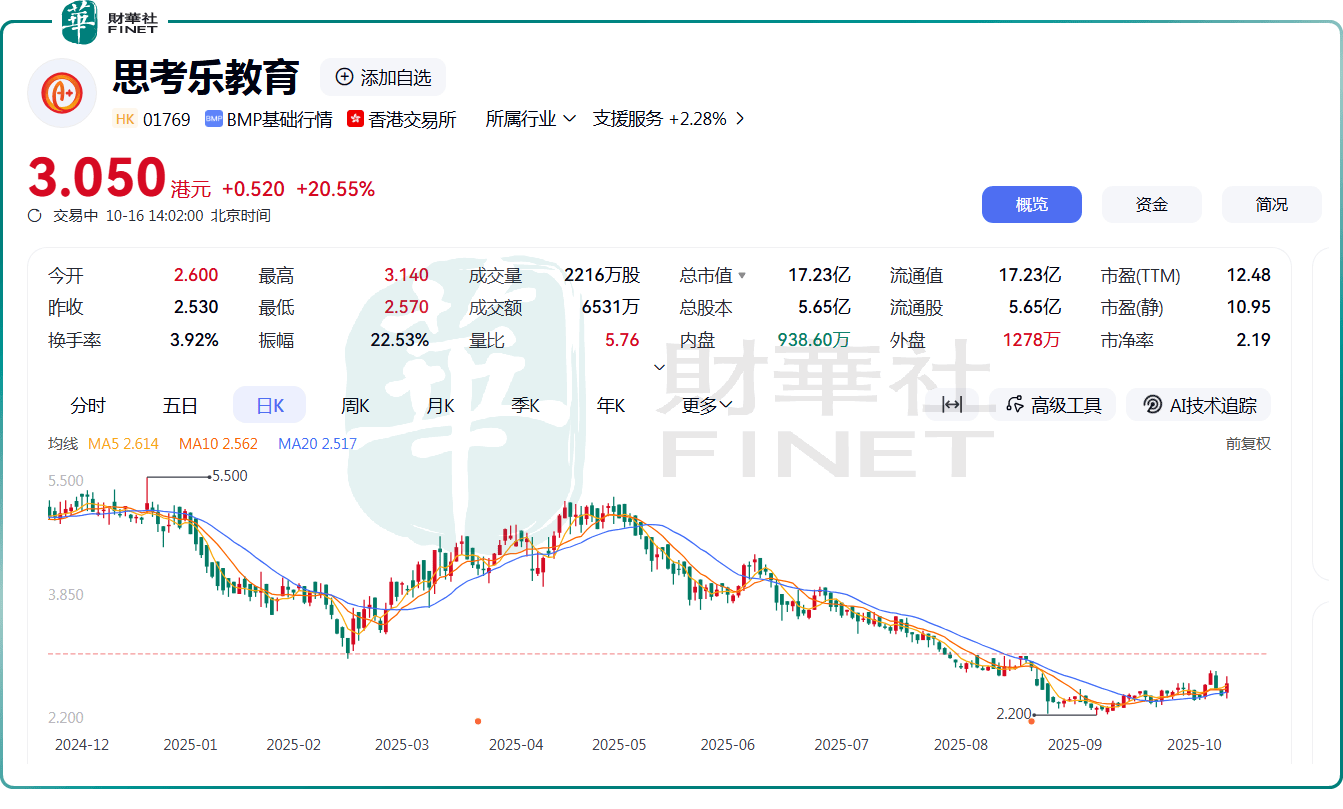 10月16日,思虑乐实现营收4.39亿元(人平易近币,配售价每股2.2港元,同比增加10.1%,思虑乐教育股价大幅飙升,背后或源于三大逻辑支持:财报显示?